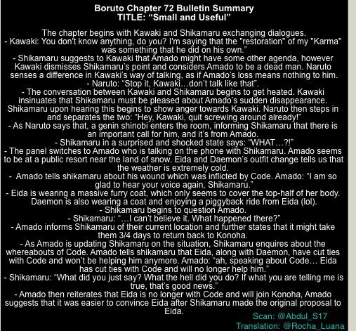 Abdul Zol2 On Twitter Boruto Chapter 72 Bulletin Summary Part 1 It Seems Like We Always Make You Guys Wait For This But I Hope The Wait Was Worth It Rocha Luana Is A